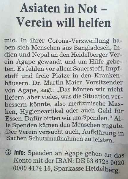 - 25.05.2021: "Asiaten in Not - Verein will helfen"