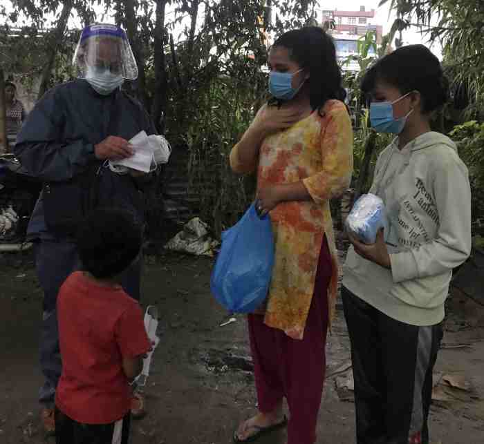 In Nepal, there is still a strict lockdown and no one is allowed on the streets. But our partner Bishnu Parajuli wanted to go to the slums to distribute masks and hygiene items. So he first approached the local police and asked for cooperation. Already there he distributed 200 masks, because the police have to carry out their operations without protection. With the support of the police, he then distributed 3500 masks to children and adults in Bagmati River corridor slum area for three days. Two more days he was in UN Park slum area and distributed another 2500 masks. In the next few days, he will continue to provide masks to residents in other slums.