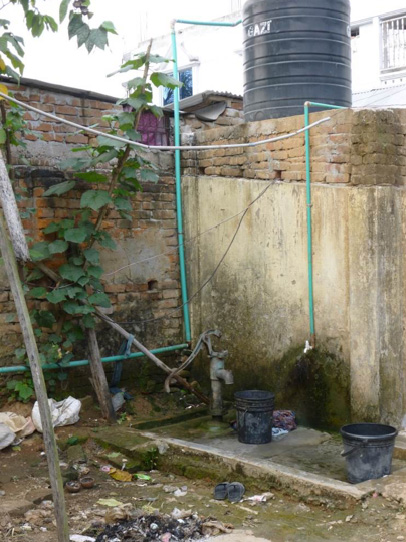 Fig 2: Almost every family has its own simple pump well. Often the technical equipment is inadequate and there can be vertical seepage of wastewater into the groundwater - for example, in the case of defective base plates as shown here.