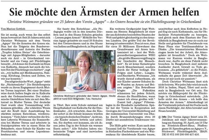 - RNZ on 4th of April 2016: "Sie möchte den Ärmsten der Armen helfen"