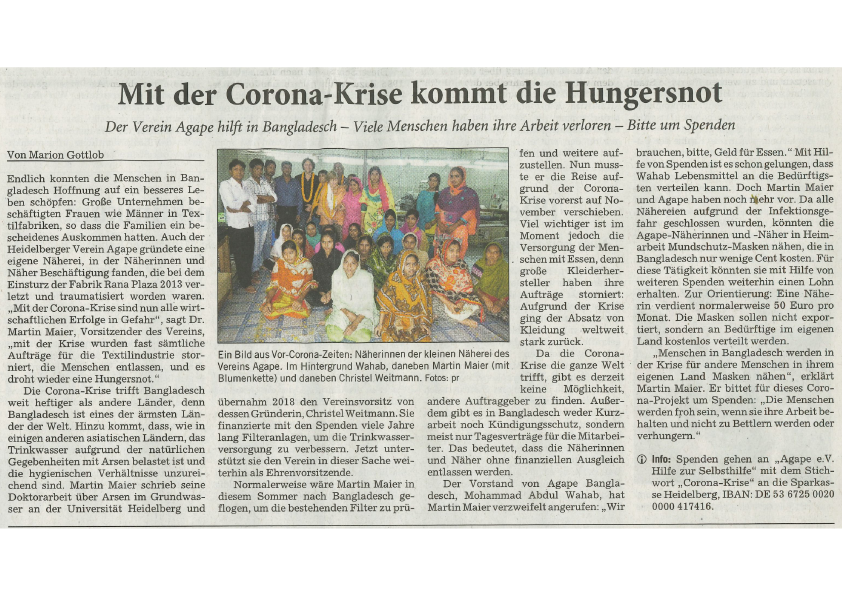 - RNZ, May 2020: "Mit der corona-Krise kommt die Hungersnot"
