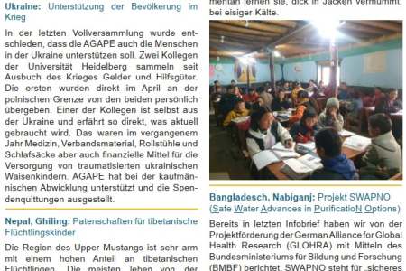The non-profit association Agape has been active in India, Bangladesh, Nepal, Tibet and Romania since 1991. The focus is on disadvantaged children, for whom the association has built orphanages and schools in slums and rural areas. Our goal is to leave no one behind and to give children from poor families the opportunity of school education. In addition, the association is committed to ensuring that these children also have access to clean drinking water. We would be pleased if you would like to support us with a donation: