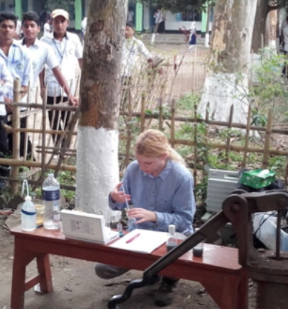 Das Heidelberger Institut für Global Health (PD. Dr. med. Sabine Gabrysch) beschäftigt sich im Rahmen einer repräsentativen Feldstudie in Sylhet, Bangladesch mit dem Thema Mangelernährung und dessen Einfluss auf das Wachstum von neugeborenen Kindern. In diesem Zusammenhang soll u.a. Eisen im Trinkwasser untersucht werden. Im Rahmen der Feldstudie werden die ca. 2.000 Trinkwasserbrunnen im Untersuchungsgebiet erfasst, markiert und beprobt. In einer Zusammenarbeit mit dem Institut für Geowissenschaften (GEOW, Dr. Martin Maier) sollen neben dem Parameter Eisen auch Arsen und die charakteristischen Parameter beobachtet werden, durch die das Redoxmilieu abgeleitet werden kann.